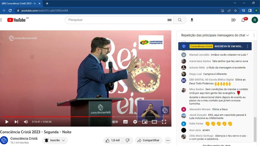 transmissões das grandes plenárias do evento, pelo canal do Evento no Youtube: