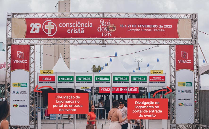 • 2 Assinaturas de marca na lona da entrada principal do pavilhão central (Tabernáculo)