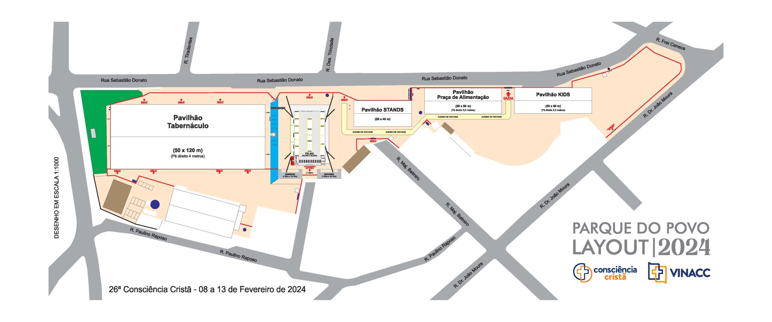 • 03 painéis em lona (2x1m), fixados nos fechamentos da estrutura (face externa do evento);